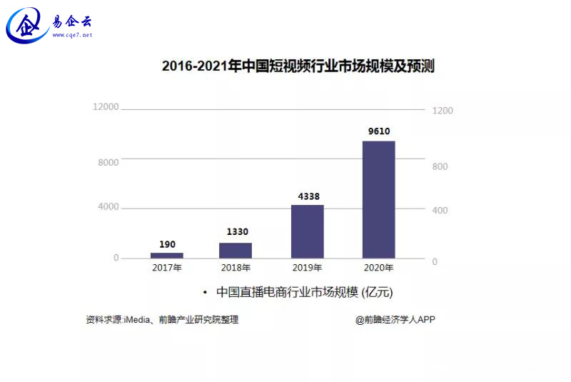 受疫情影响,旅游等传统消费几乎停摆,而直播带货等“宅经济”则风生水起,据iiMedia数据显示,国内市场规模从2017年190亿元迅速增长至2019年的4338亿元,预计2020年将再翻一倍,整体规模将达到9610亿元。